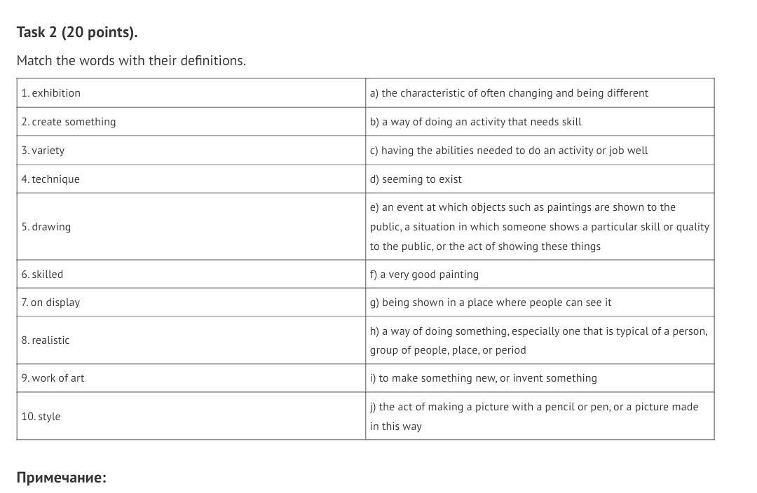 6. skilled f) a very good painting