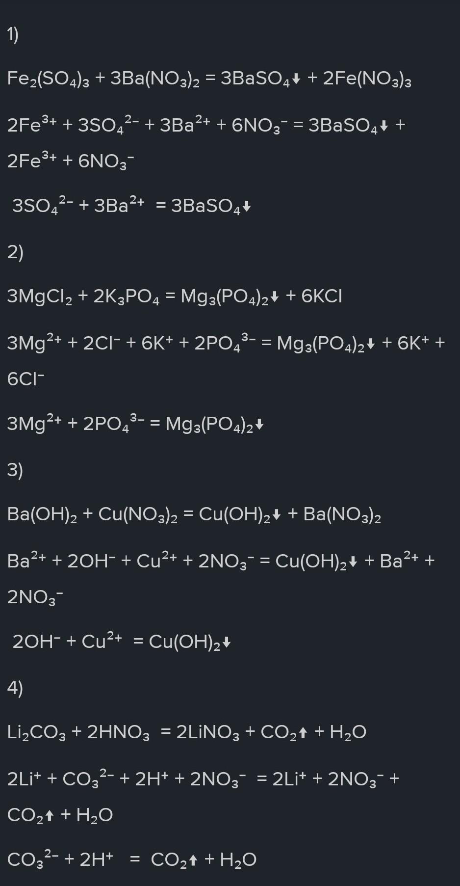 Складіть рівняння реакцій між ферум (ІІІ)сульфатом та барій