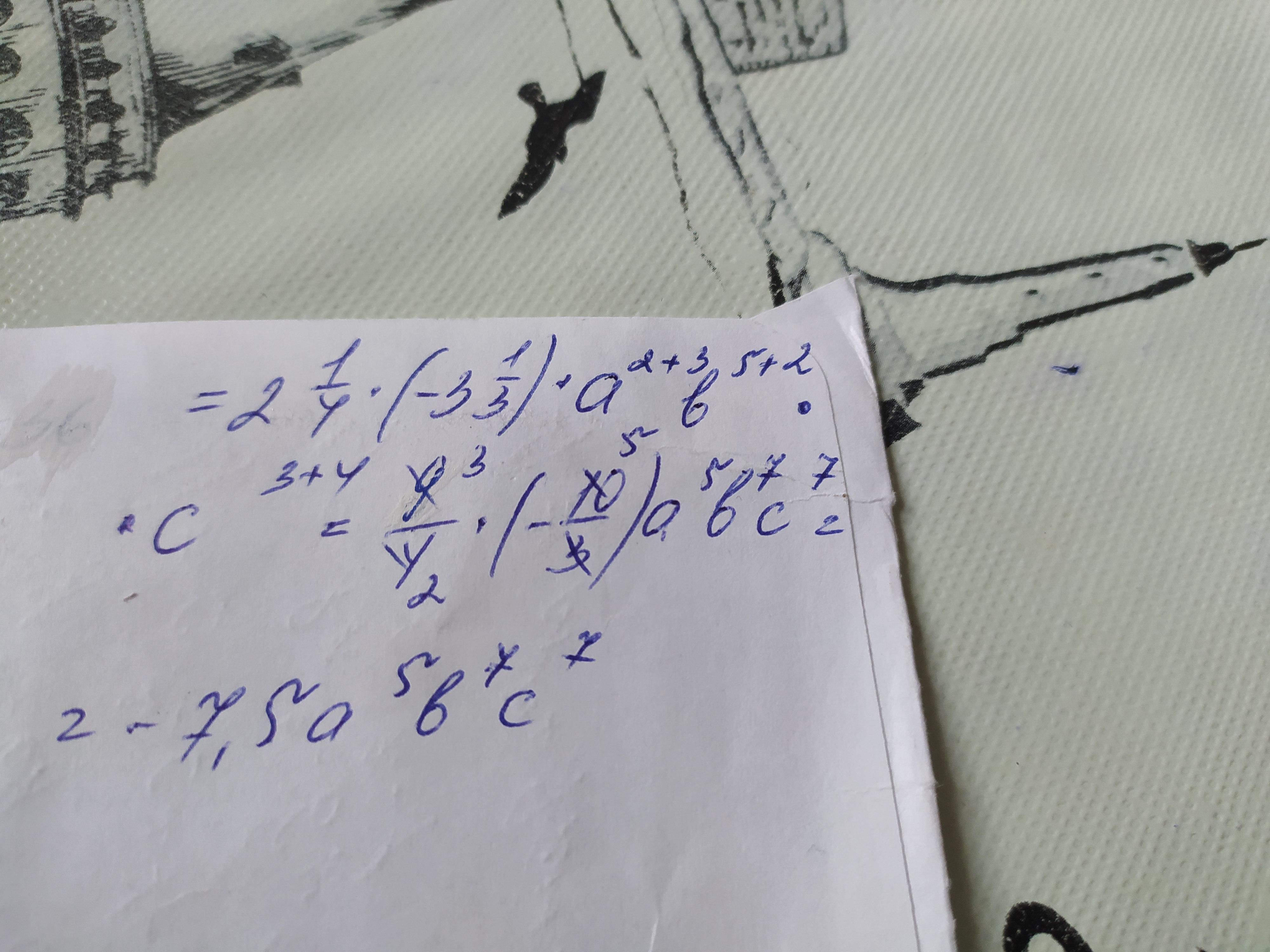(2 1/4а²в⁵с³)(-3 1/3а³в²с⁴) =