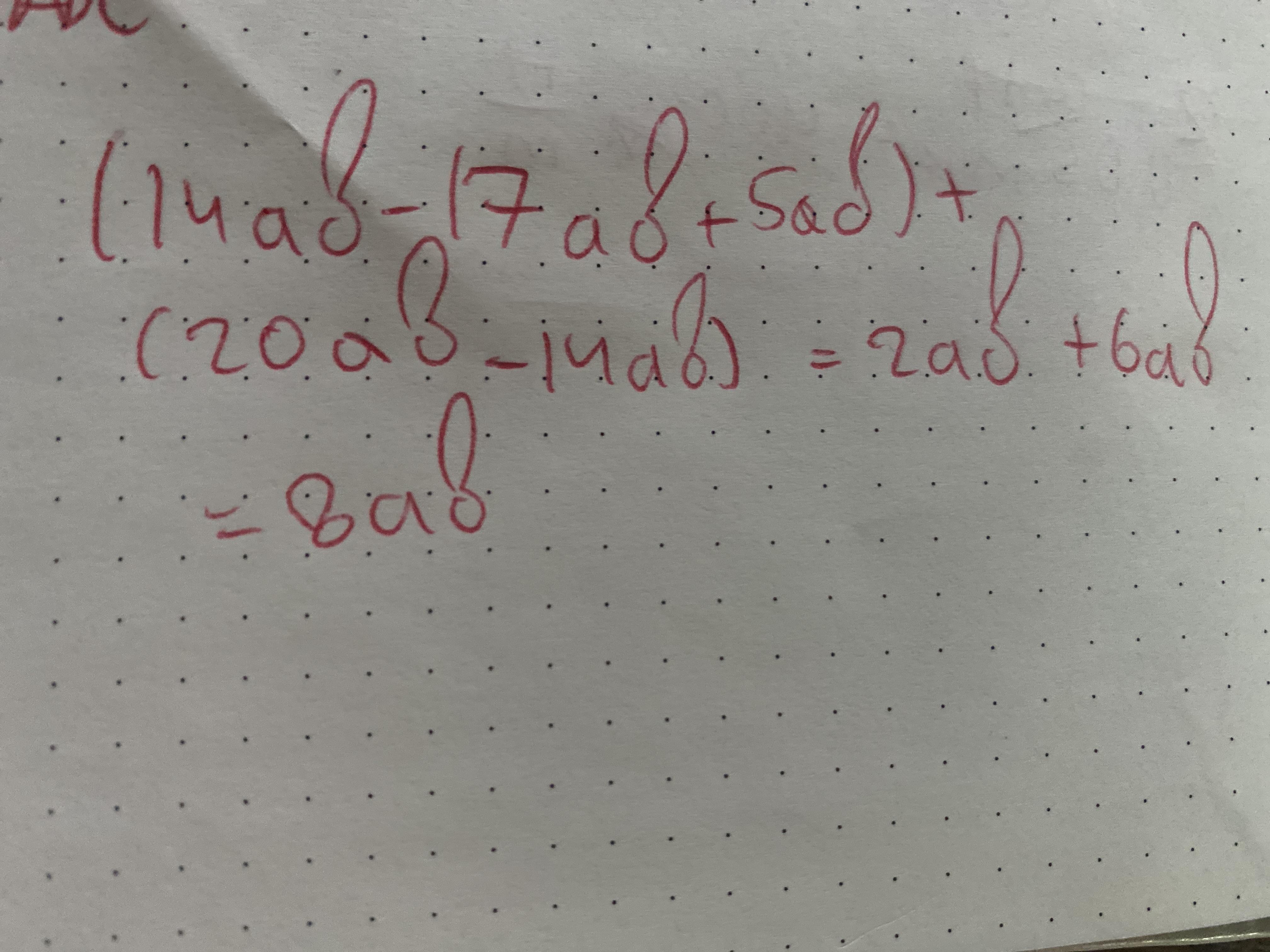 (14ab-17ab+5ab)+(20ab-14ab)=2ab+6ab=8ab.