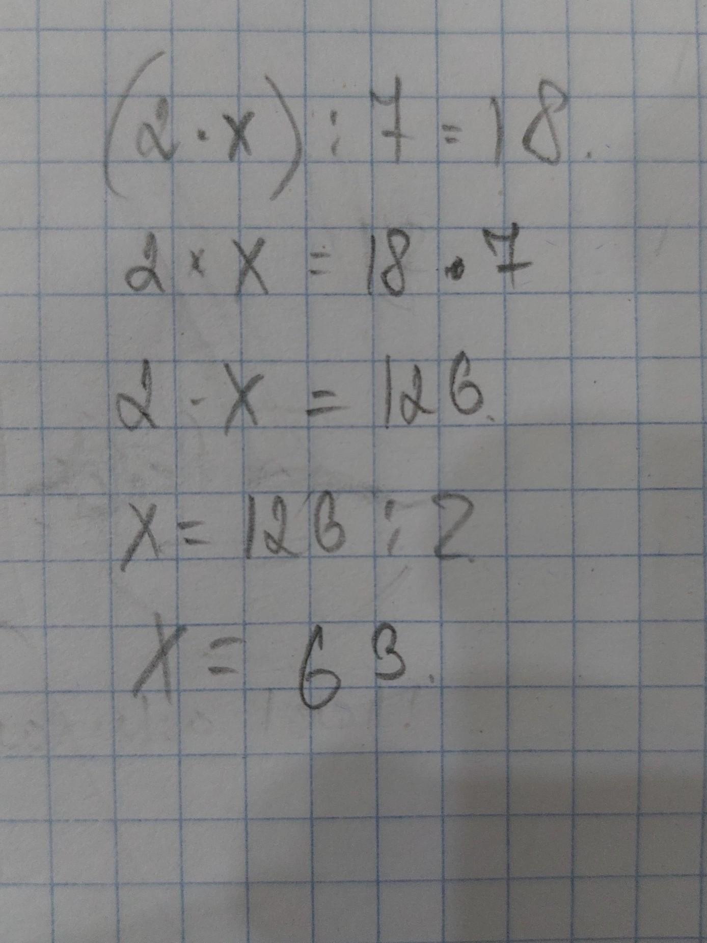 Сначала нужно умножить 18 и 7 , потом 126 делим на 2 и х=63