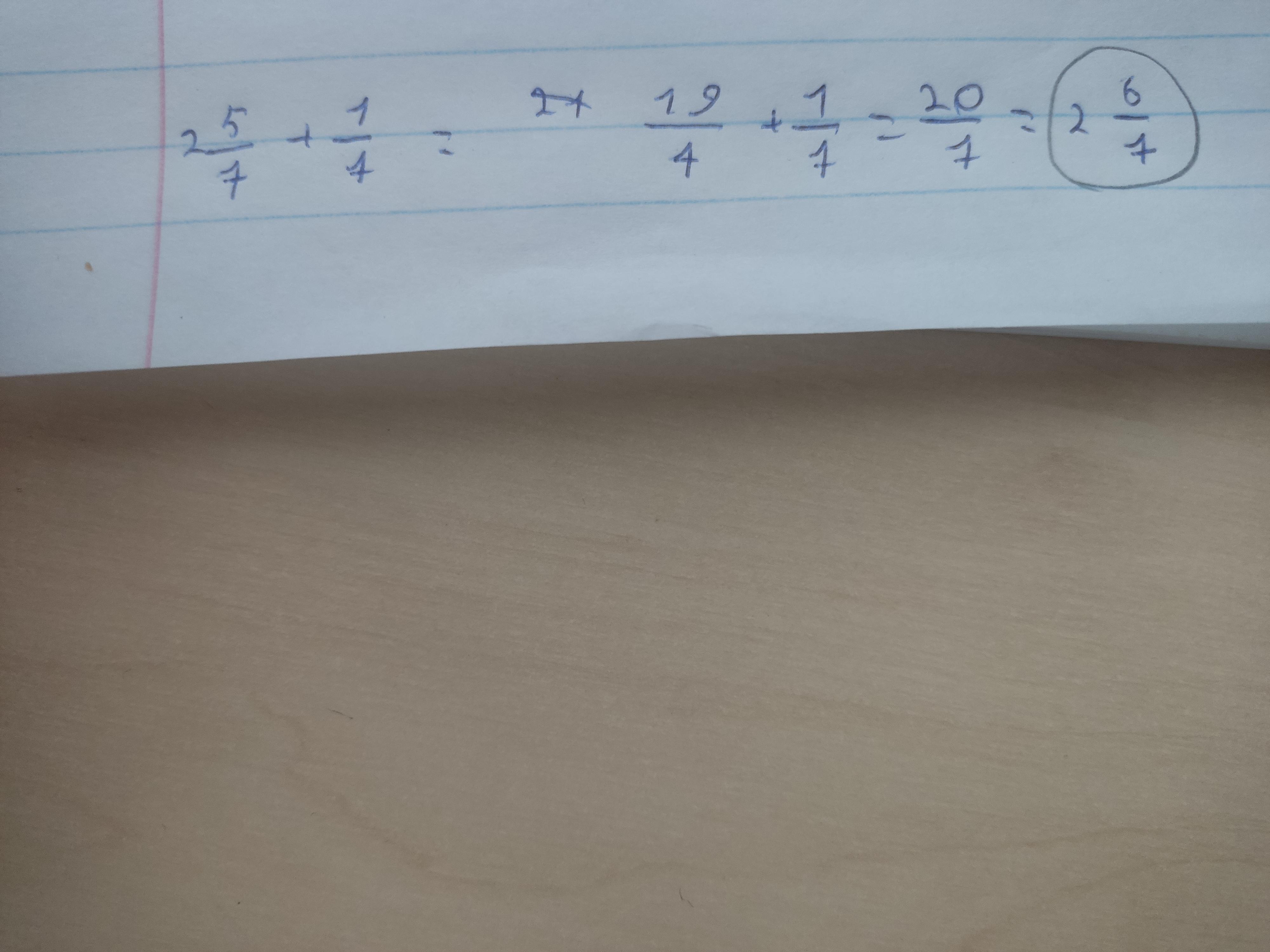 У тебя ошибка, 2 5/7 = 19/7, а не 17/7