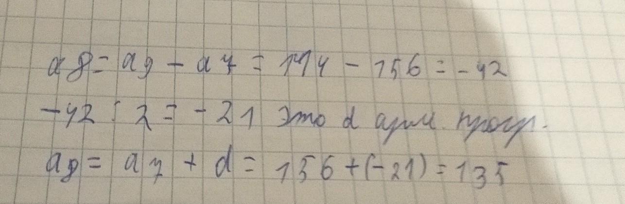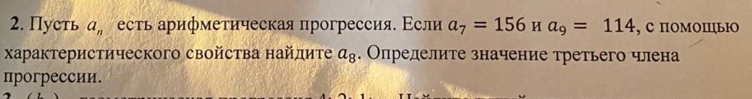 Пусть а, есть арифметическая прогрессия. Если а, = 156 и а = 114, с помощью характеристического свойства найдите а8