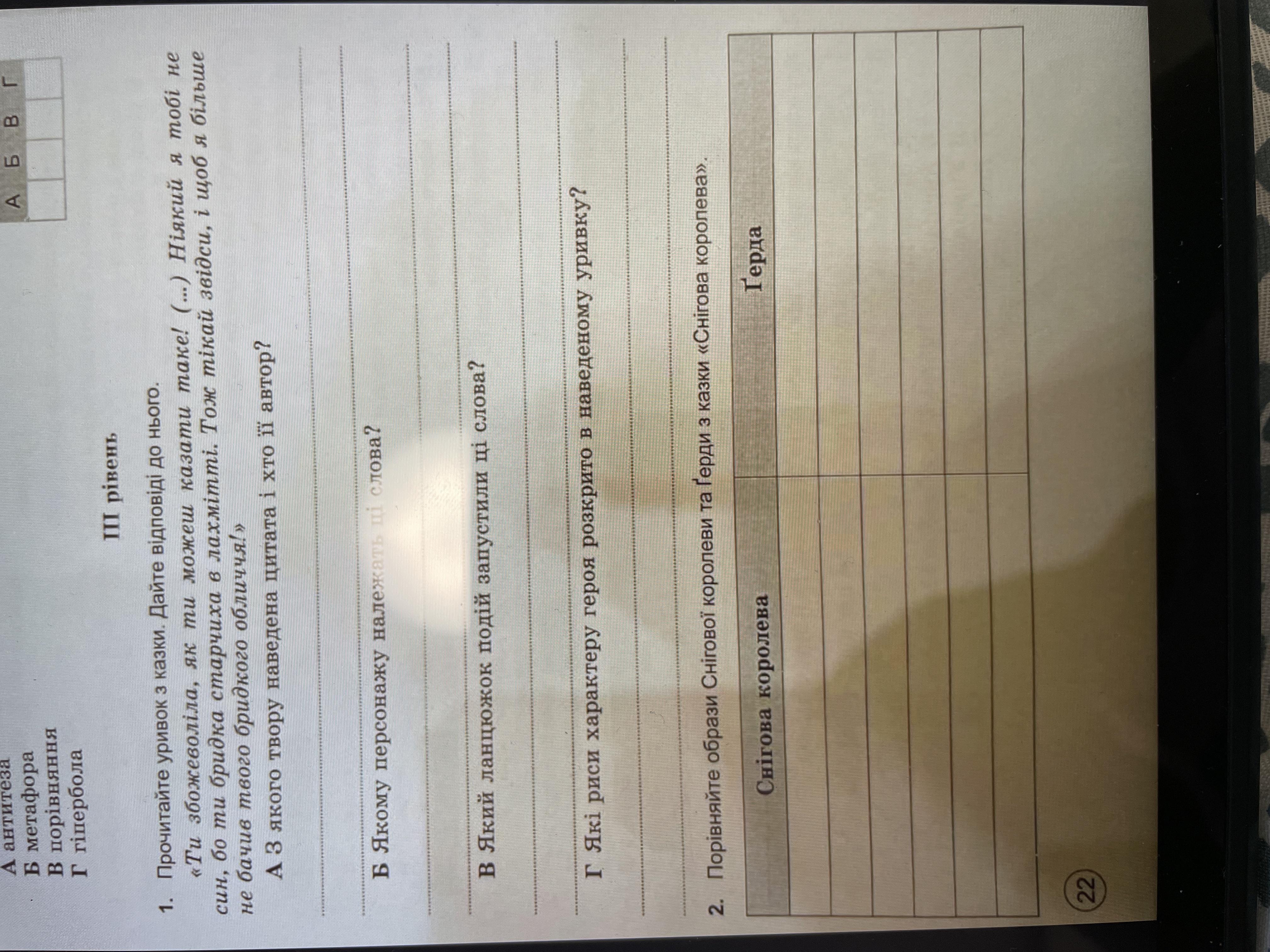 вибач але 2 завдання не знаю бо не читала цей твір.