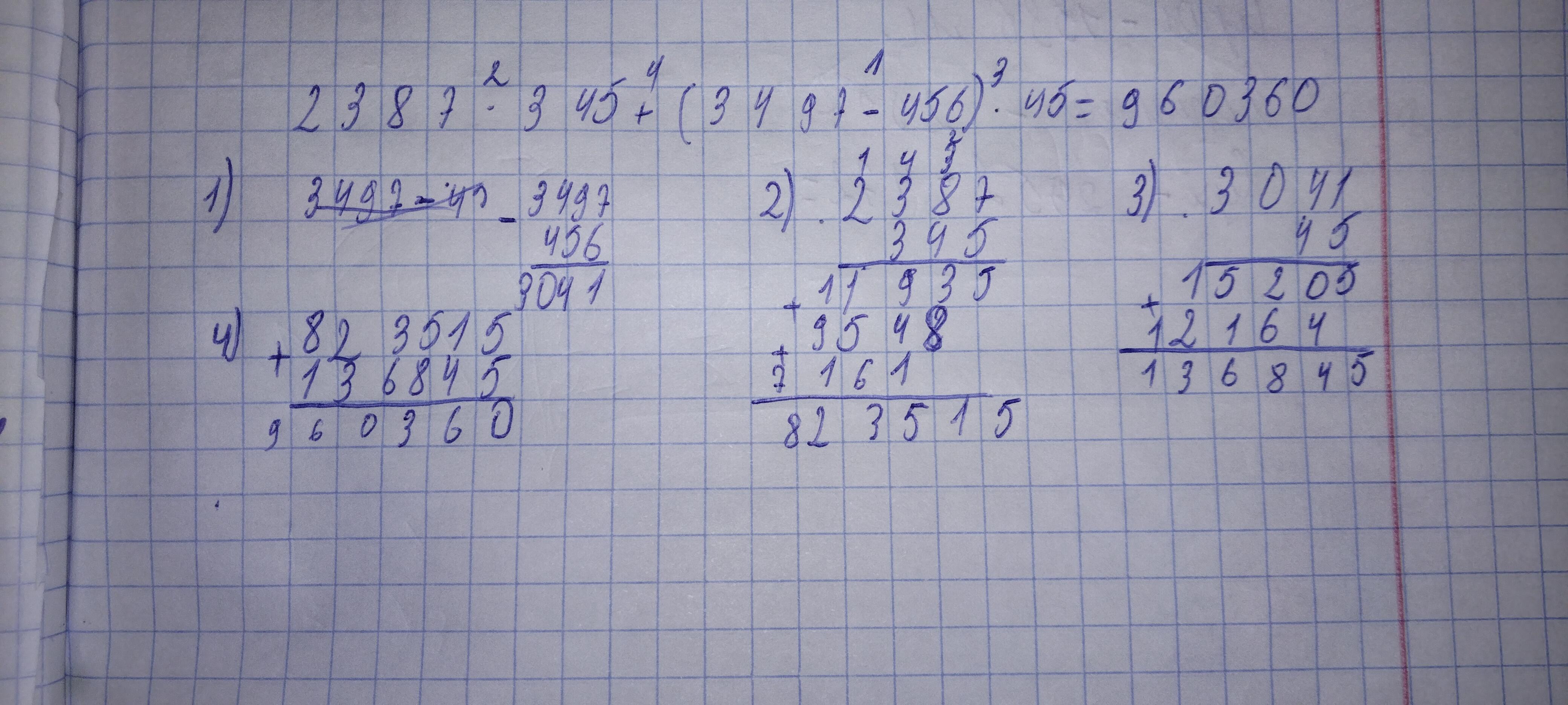 1 первое всегда выполняется в скобках 3497-456= 3041