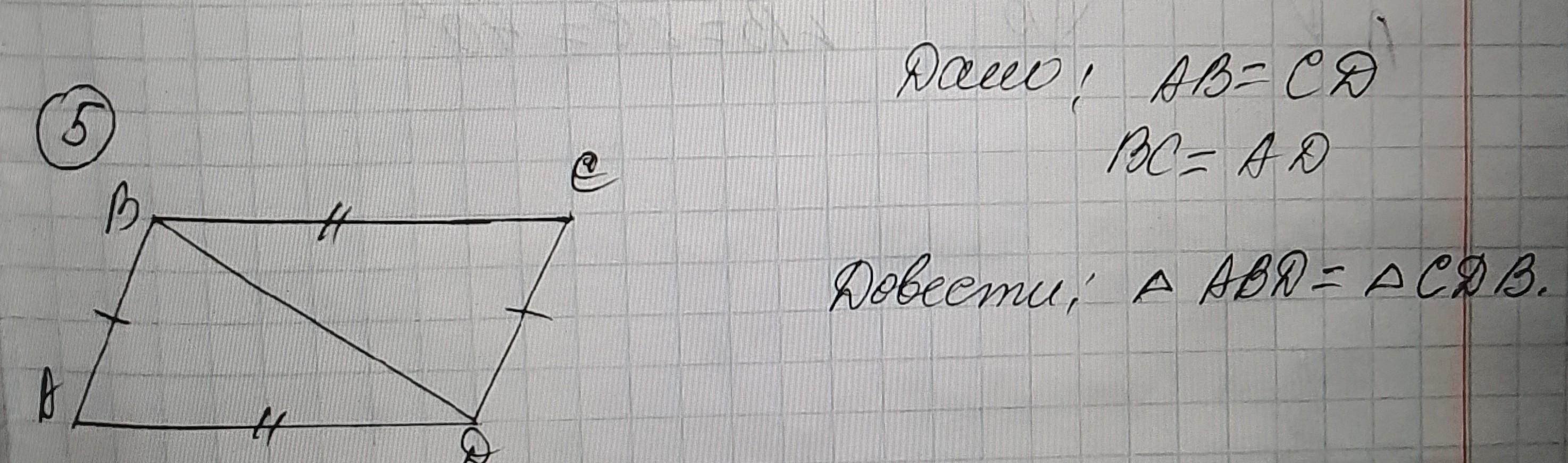 Диагональ в параллелограмме делит его на пополам.Значит два треугольника с общей гипотенузой и равными катетами всегда будут равны