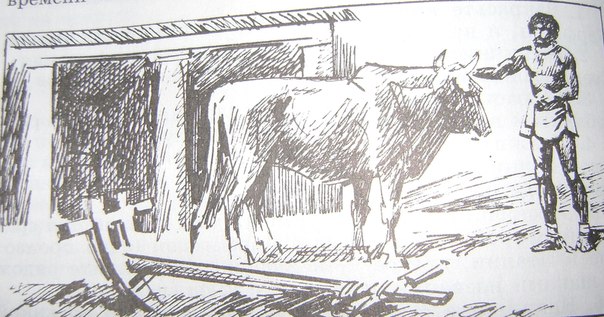 2.Если выражаться языком поэтическим, то три орудия труда на данном рисунке: плуг, руки и животное