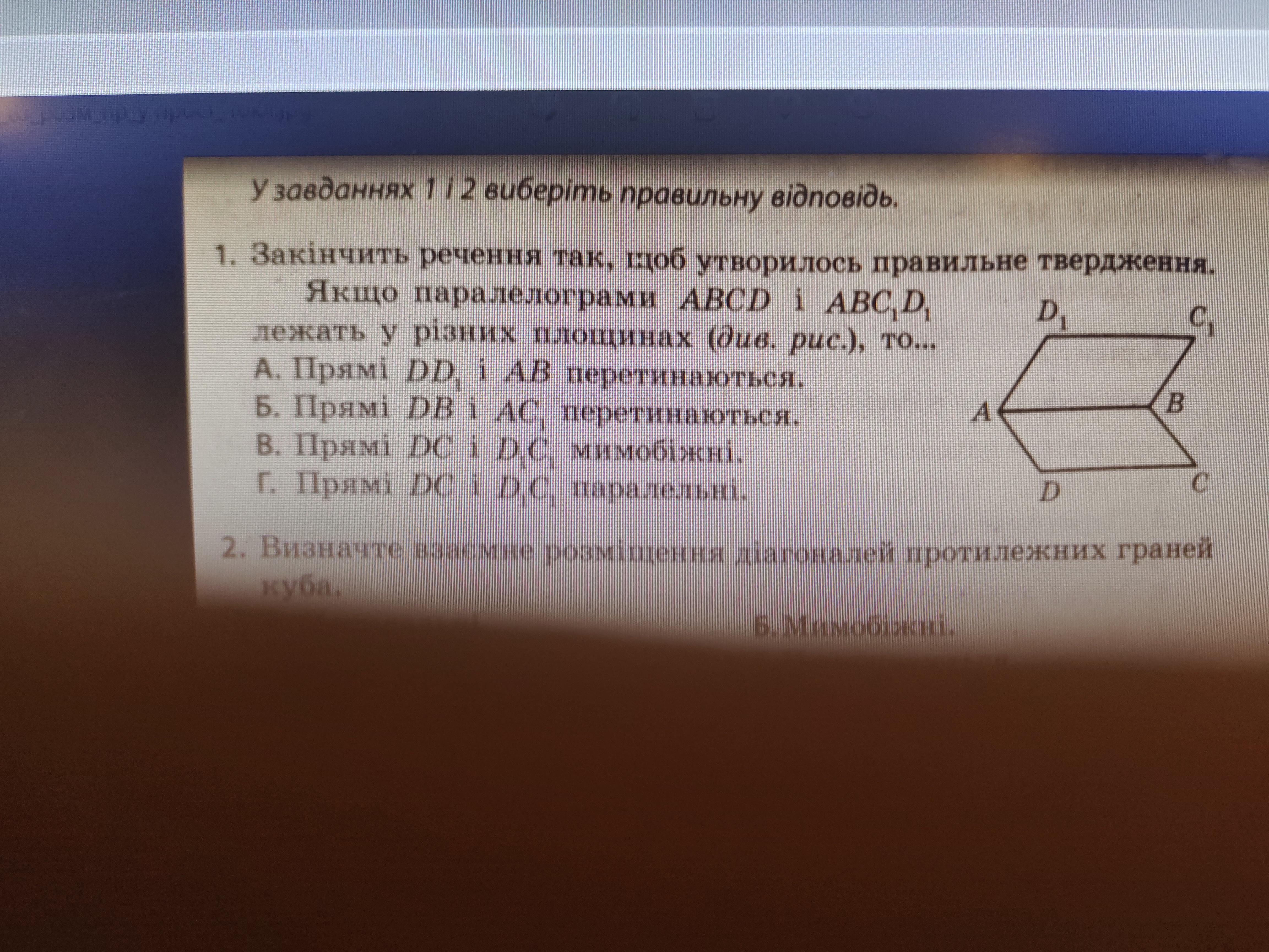 Закончите предложение так, чтобы образовалась правильное решение. Если перелелограмы АВСD и ABC1D1 лежать на разных плоскостях