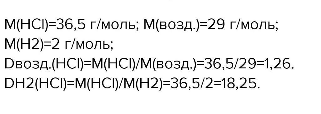 M(HCI)=36,5 г/моль; М(возд.)=29 г/моль;