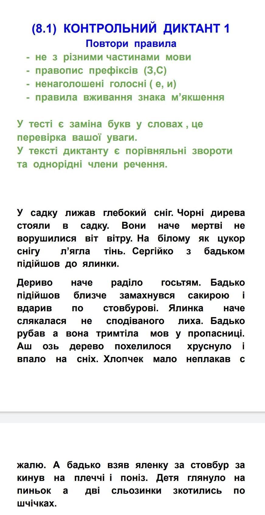 у садку лежав глибокий сніг. Чорні дерева стояли в садку, вони наче мертві не рухались від вітру . На білому як цукор снігу лягла тінь. Сергійко з батьком підійшов до ялинки.