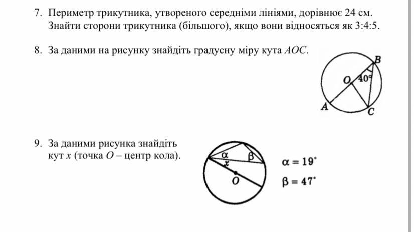 8)<АОС=80°Это центральный угол,он равен дуге,на которую опирается,а вписанный угол АВС равен половине дуги, на которуюон опирается