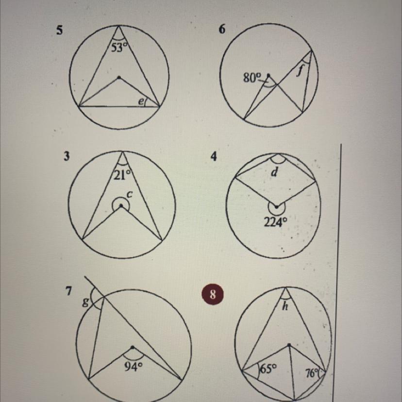 7) попытаюсь объяснить, но не факт что будет понятно. короче центральный угол (назову его 1) и угол между хордой и секущей (назову его 2) лежат на одной дуге, а значит угол 2= 94:2=47 и угол g =180-47=133