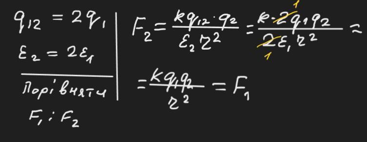 Як зміниться сила взаємодії між двома точковими зарядами, якщо один із зарядів збільшити в 2 рази, а також діелектричну проникність середовища збільшити в 2 рази?