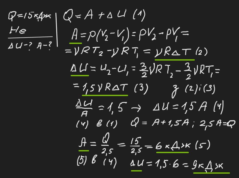 15 кДж теплоти. Визначити зміну внутрішньої енергії газу та виконану ним