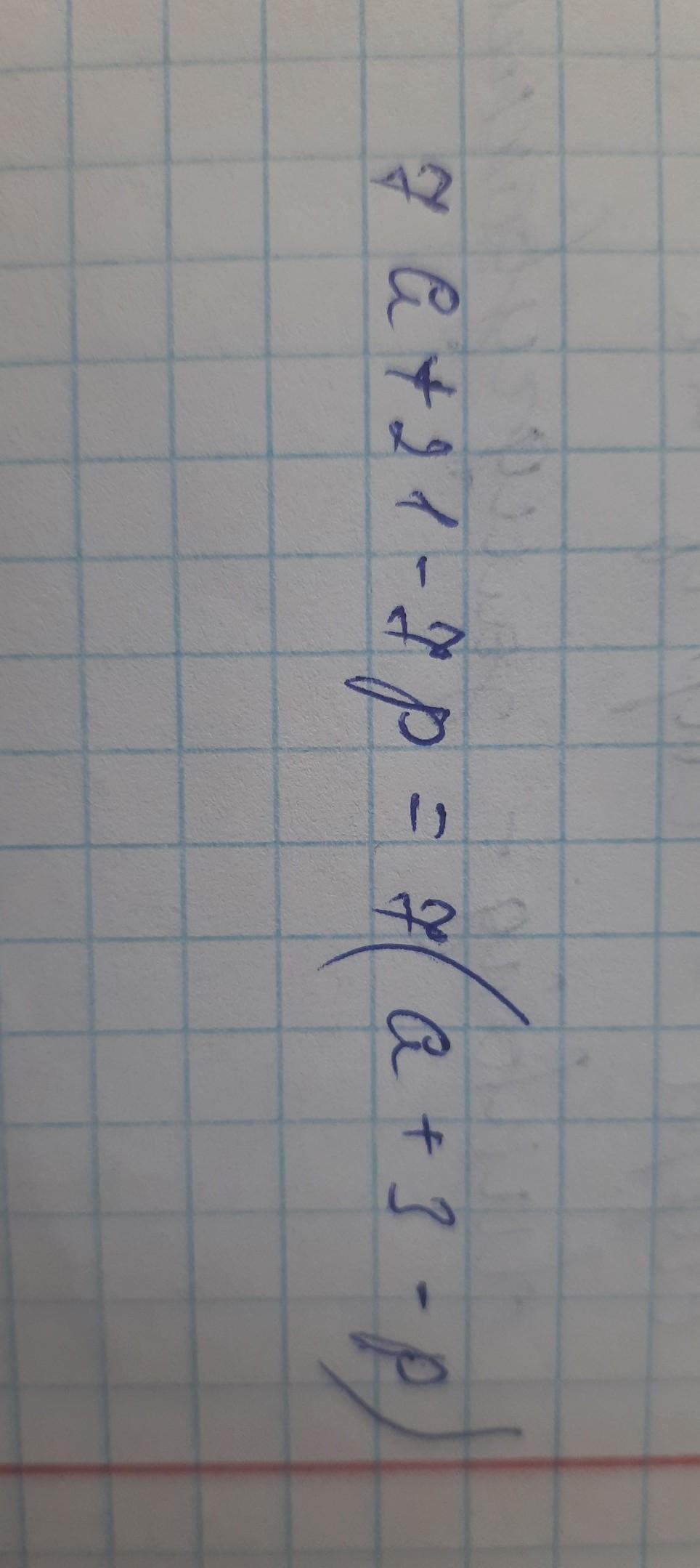 7а + 21 - 7р = (7 • а) + (7 • 3) - (7 • р)