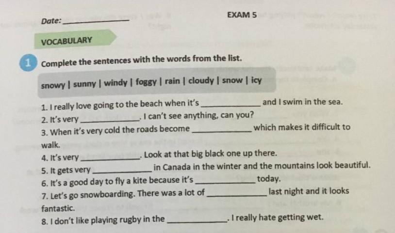 1Sunny 2Foggy 3icy 4cloudy 5snow 6windy 7snow