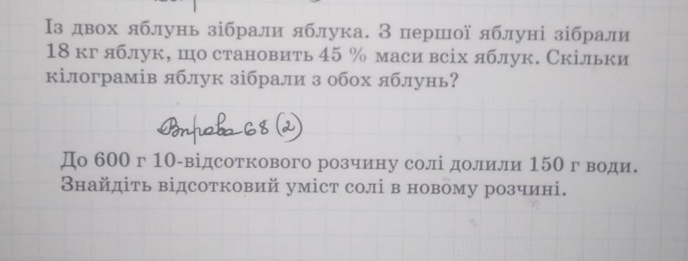 Із двох яблунь зібрали яблука. З першої яблуні зібрали 18 кг яблук, що становить 45% маси всіх яблук. Скільки кілограмів яблук зібрали з обох яблунь?