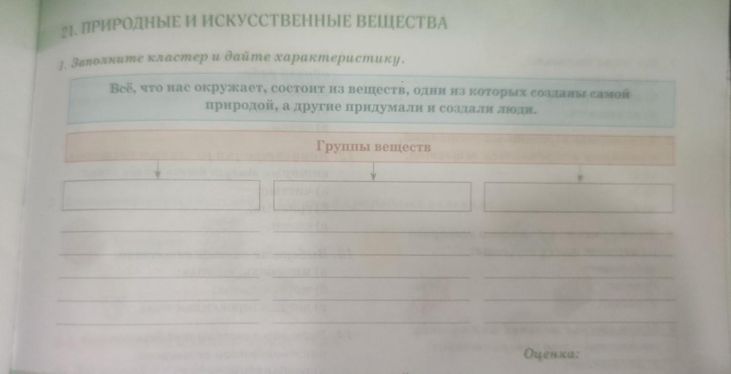 1. Заполните кластер и дайте характеристику. Всё, что нас окружает, состоит из веществ, одни из которых созданы самой природой, а другие придумали и создали люди. Группы веществ