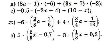 д) (8a - 1)*(-6) + (3a - 7) *(-2) = -48a + 6 - 6a + 14 = -54a + 20