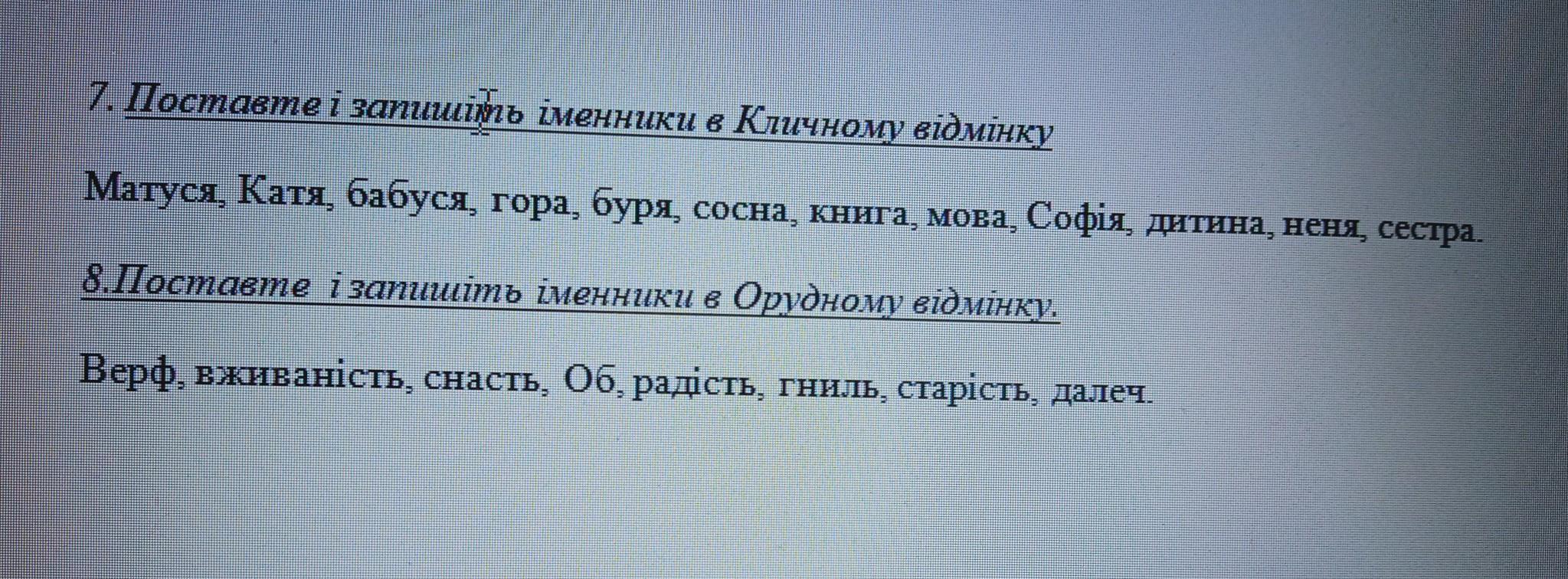 7:Матусю,Катю,Бабусю,горе, буре, сосни, книго, мово, Софіє, дитино, нене