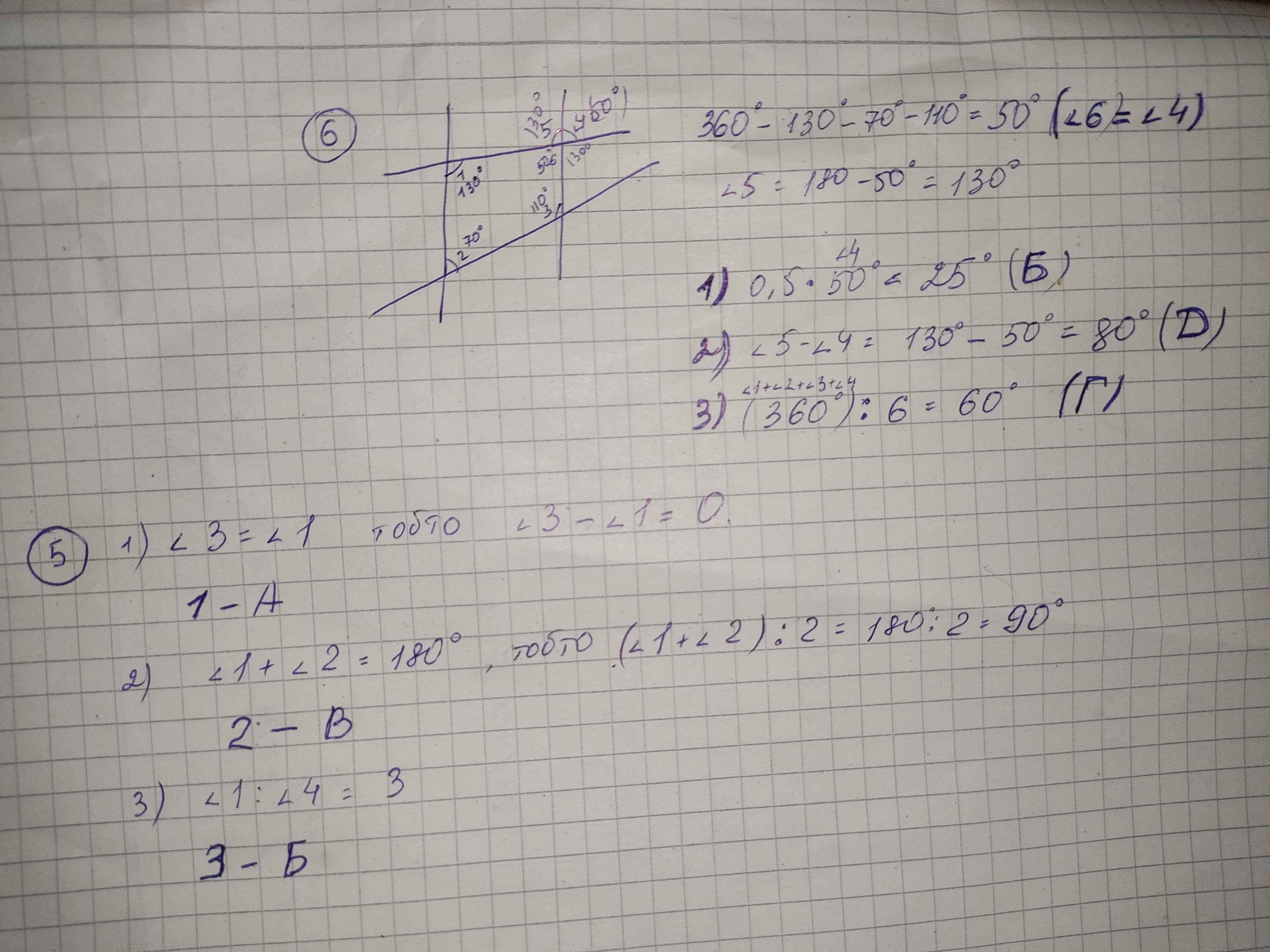 ∠5=∠1=130° - как накрест лежащие.