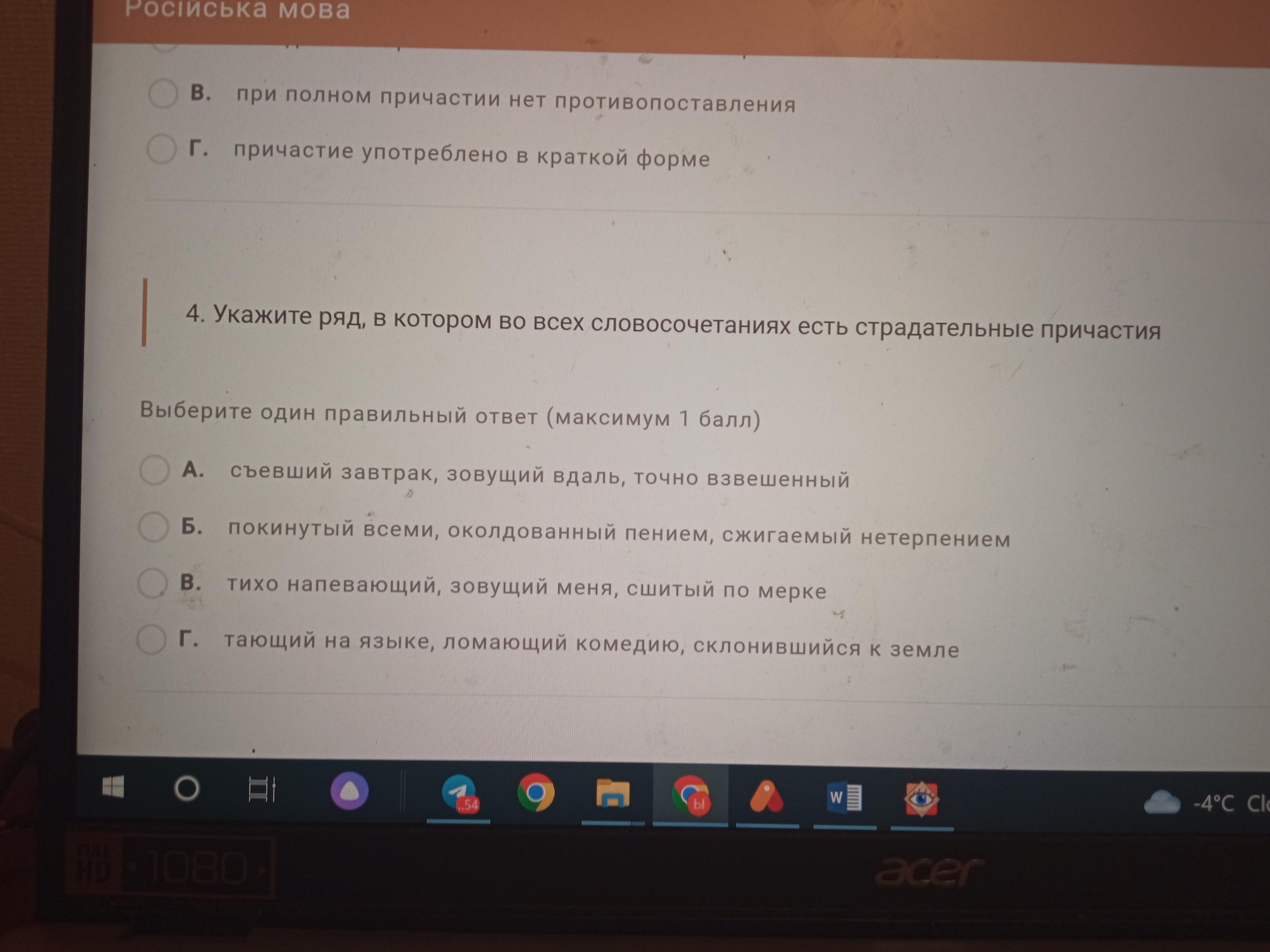 ≡ В остальных вариантах два причастия страдательные (взвешенный, сшитый), а все остальные - действительные