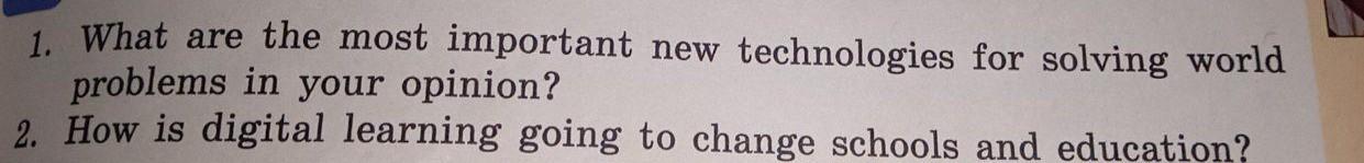 Отвечать на первое предложение? Там писать про новые изобретения которые решают мировые проблемы типо пластика и тд, ищешь в инете и через переводчик пишешь, будет тебе счастье. Второе нужно ответить как онлайн обучение или обучение на планшетах (написано не очень понятно), пишешь например In my opinion … will help/distract kids/teenagers/ teachers/ pupils… что найдешь- что придумаешь-то твое)