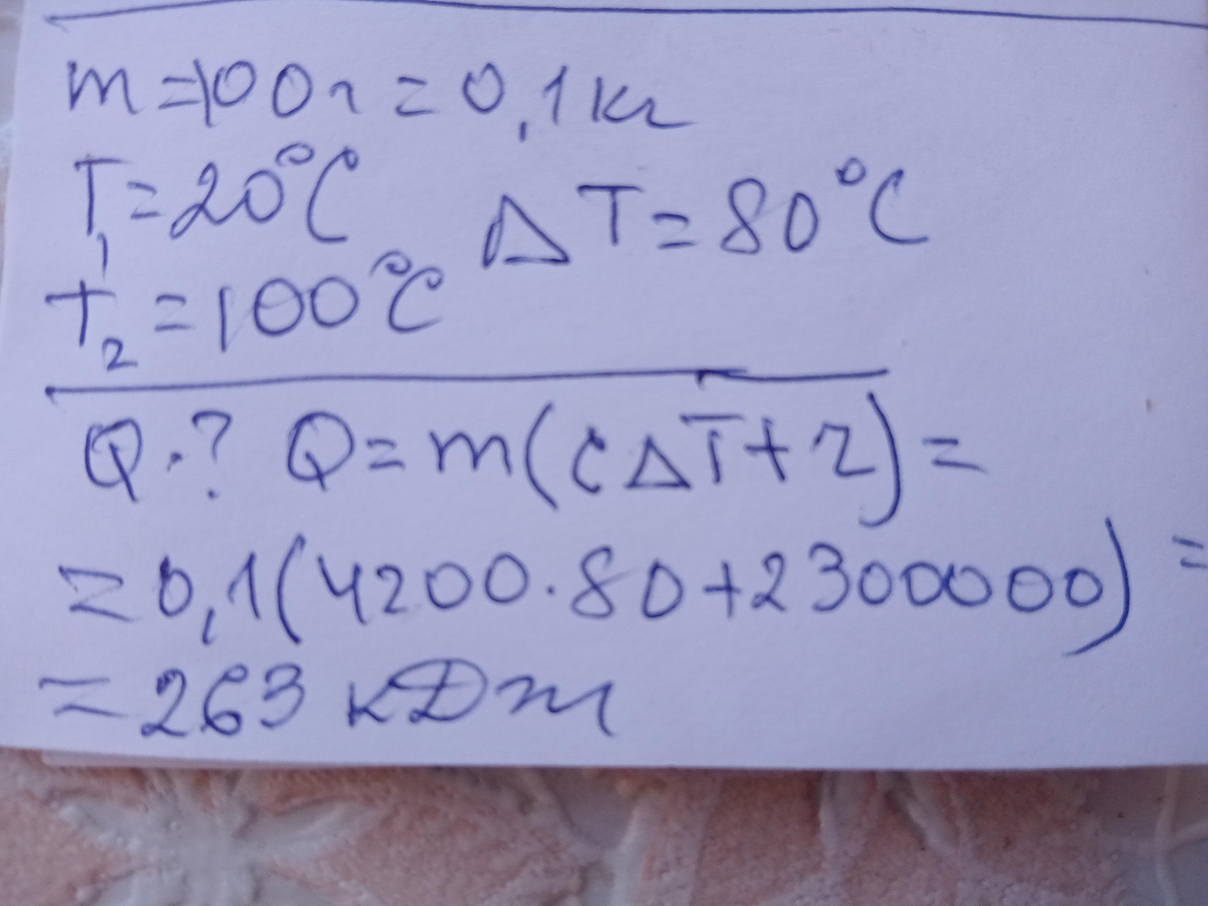їяку кількість теплоти треба передати воді,взятої при температурі 20°с,щоб нагріти її до кипіння та перетворити в пару? маса води 100г