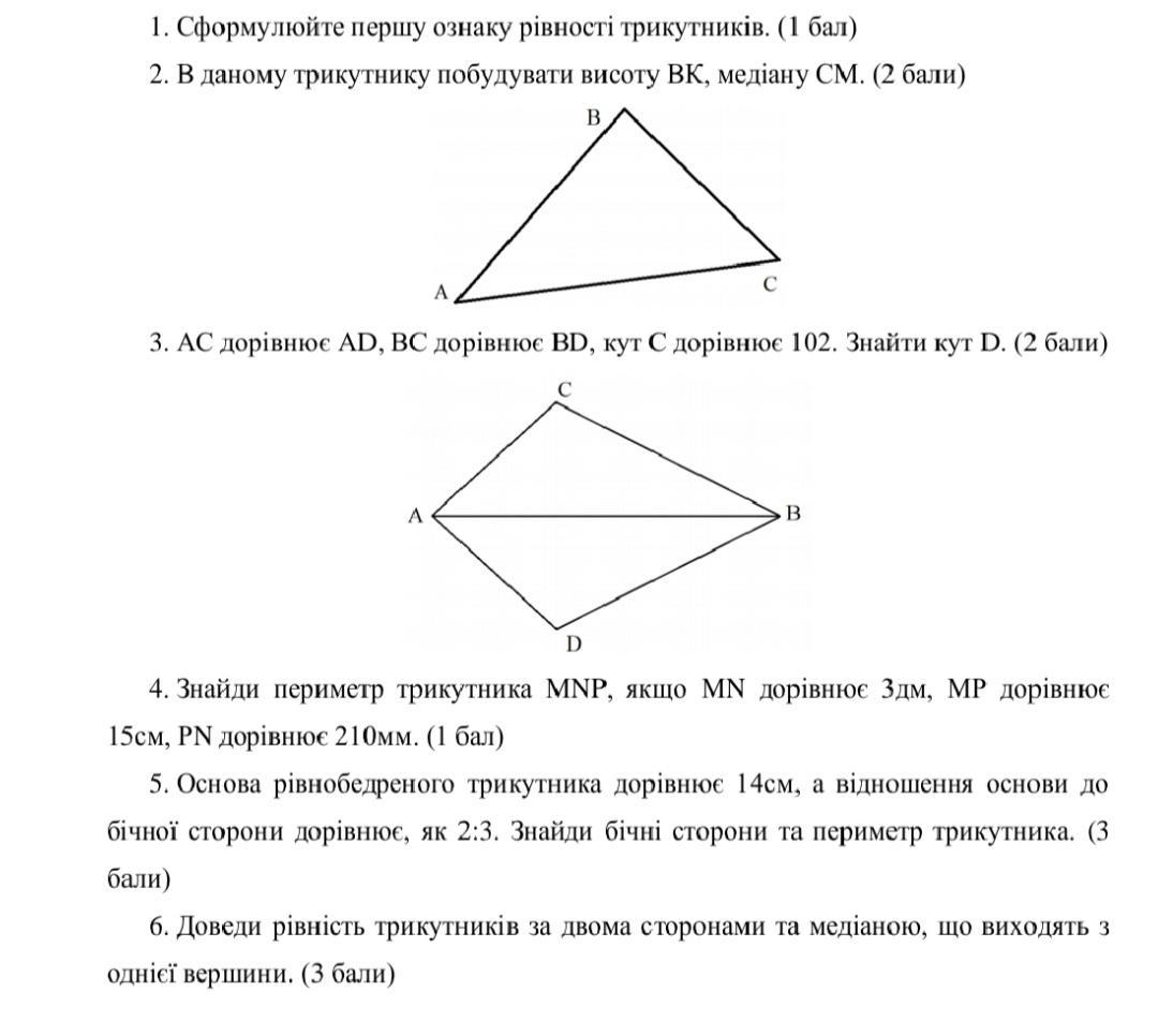 Якщо дві сторони і кут між ними одного трикутника дорівнюють відповідно двом сторонам і куту між ними другого трикутника, то такі трикутники є рівними.