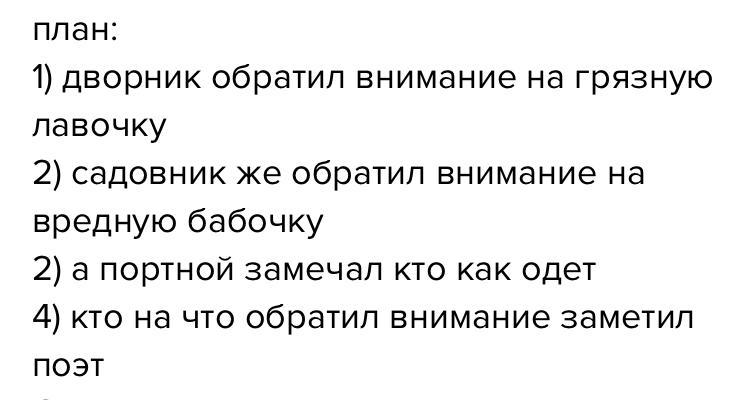 Задание 1. . Прочитайте текст. Выполните задания к тексту. Вышел на улицу дворник, Дворник заметил грязную лавочку. Вот показался садовнИК. Садовник заметил вредную бабочку. Вышел пилот и заметил погодку. Вышел танцор и заметил походку. Портной заметил, Кто как одет... а кто что заметил, заметил поэт! Эмма Мошковская 1. Определите жанр художественного стиля: 2. Составьте план, используя ключевые слова дворник, садовник, пилот, танцор, поэт.