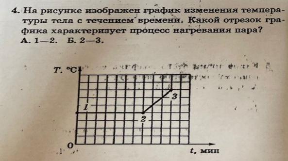 на рисунке изображен график изменения температуры тела с течением времени. какой отрезок графика характеризует процесс нагревания пара