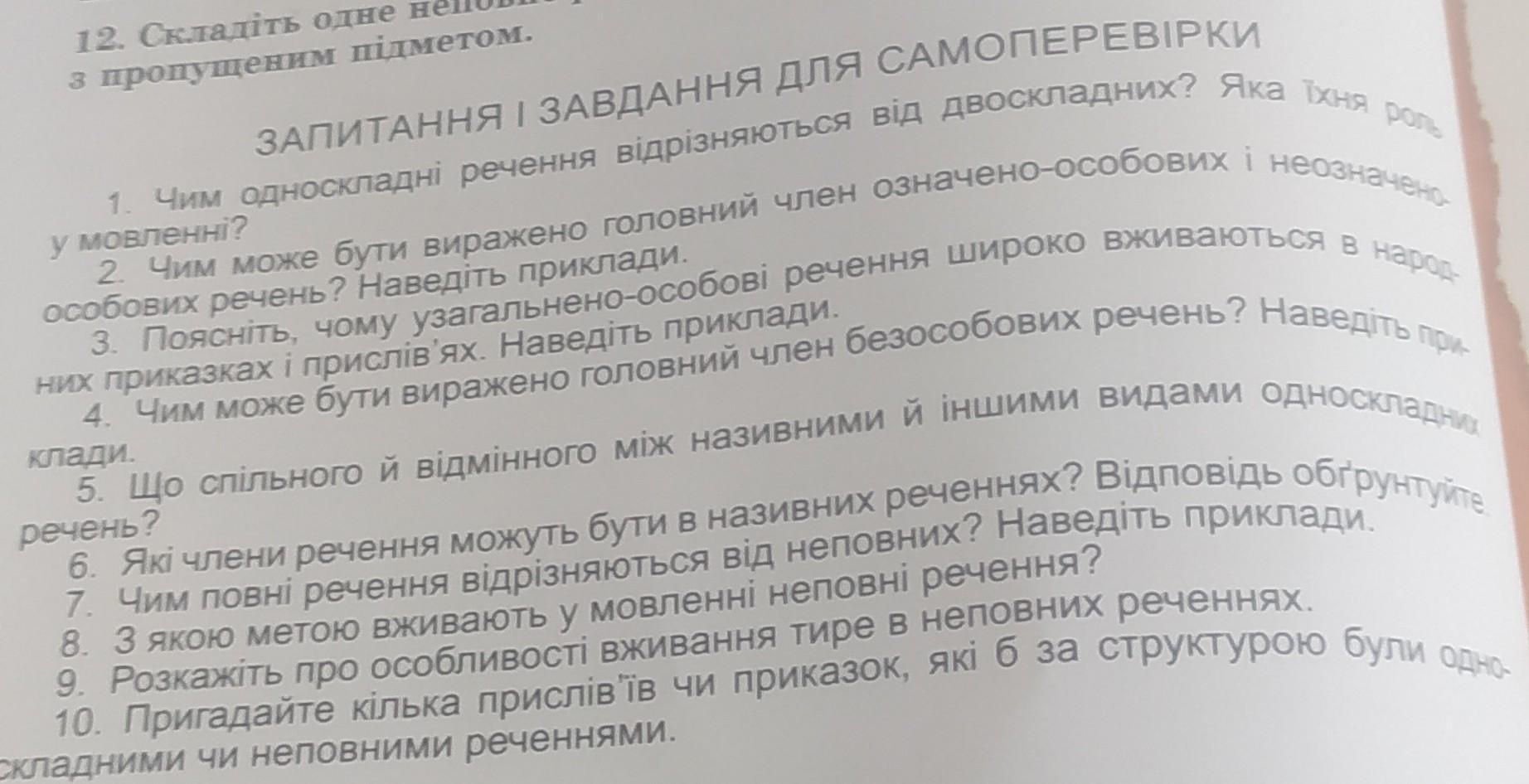 7. у неповних відсутні другорядні члени речення, у повних наявні всі