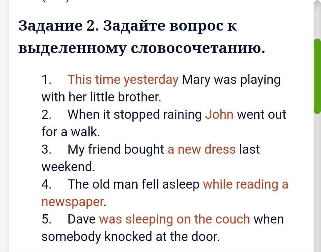 1.Why Mary was playing with her little brother yesterday? 2.Why john went for a walk when it stopped raining? 3.Why her friend brought a new dress last weekend? 4.Why the old man fell asleep while reading a newspaper? 5.Why Dave was sleeping on the couch when somebofy knocked at the door