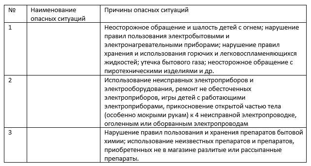Назовите опасные ситуации, которые возможны в доме (квартире) исходя из их причин? Заполните таблицу.