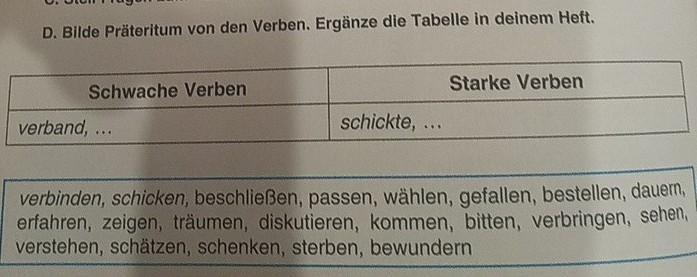 Schwache Verben: в таблице сильных диеслив, в которой ты должен искать притеритум этих слов, а слабые все те, которых нету в этой таблице, просто добавляй вместо en , - te.