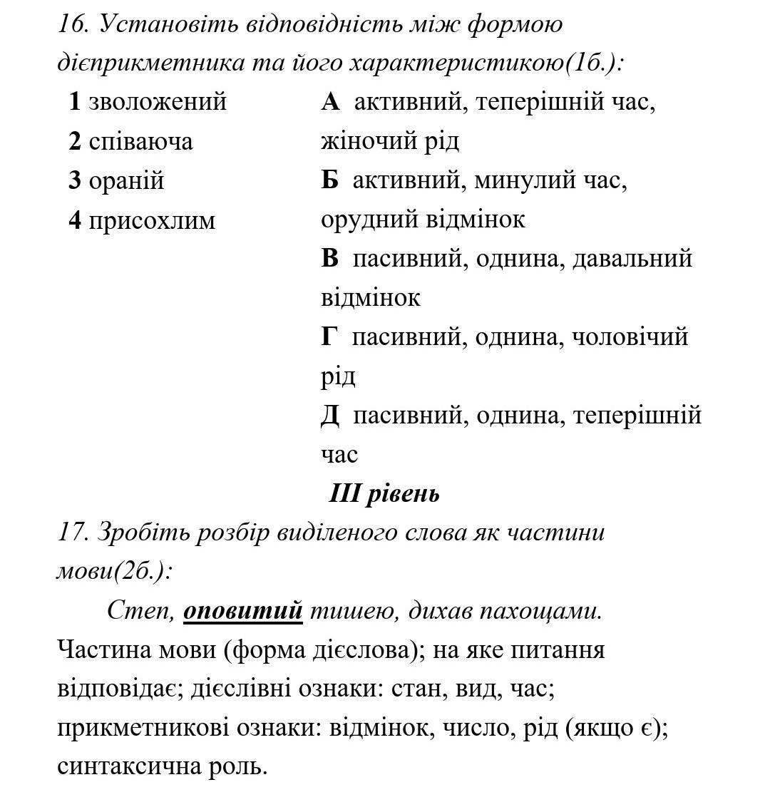 17. Оповитий- особлива форма дієслова - дієприкметник; початкова форма - оповитий; пасивний стан; доконаний вид; минулий час; чоловічий рід;Називний відмінок; означення.