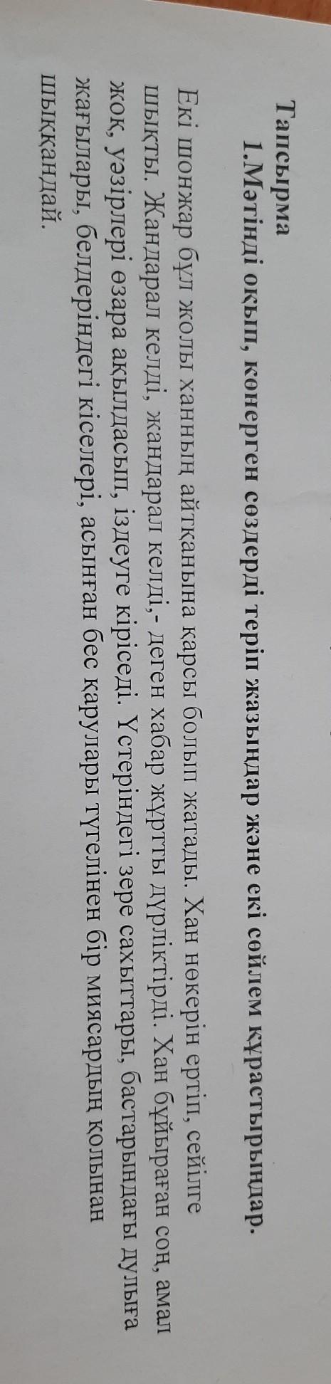 Тапсырма 1.Мәтінді оқып, көнерген сөздерді теріп жазыңдар және екі сөйлем құрастырыңдар: