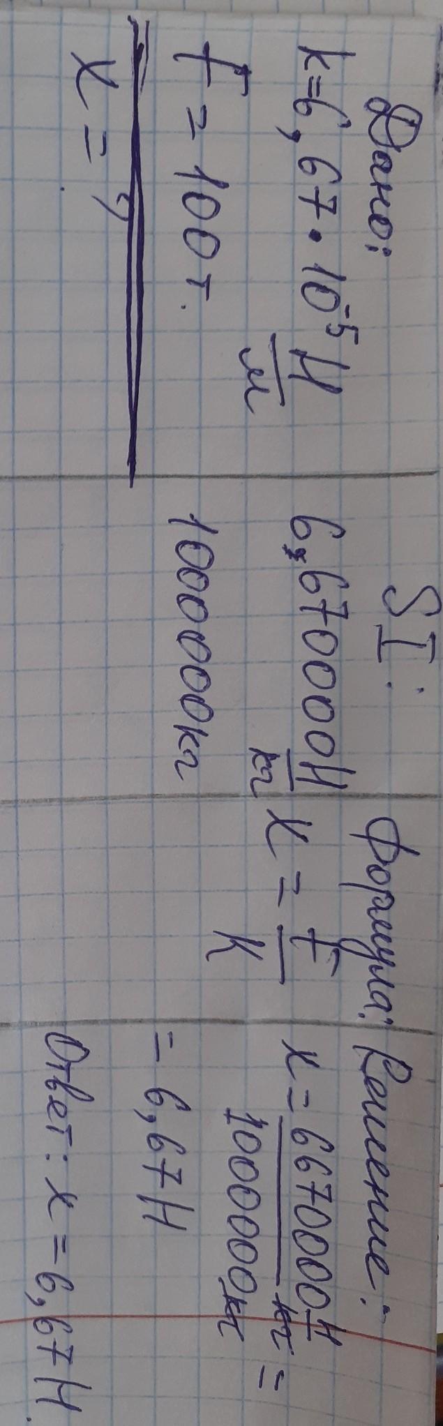 На каком расстоянии друг от друга находятся 2 одинаковых шара по 100 тонн каждый, если на них действует сила 6,67*10-5 н?