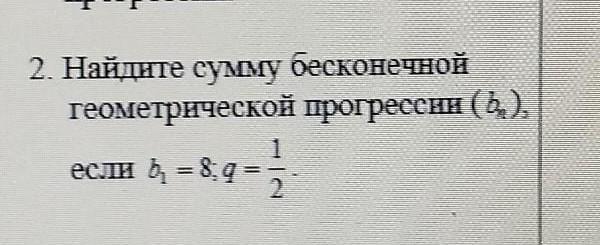 помогите пожалуйста пж пж 85 баллов 2. Найдите сумму бесконечной геометрической прогрессии (,), если b = 8:4 = 1 2