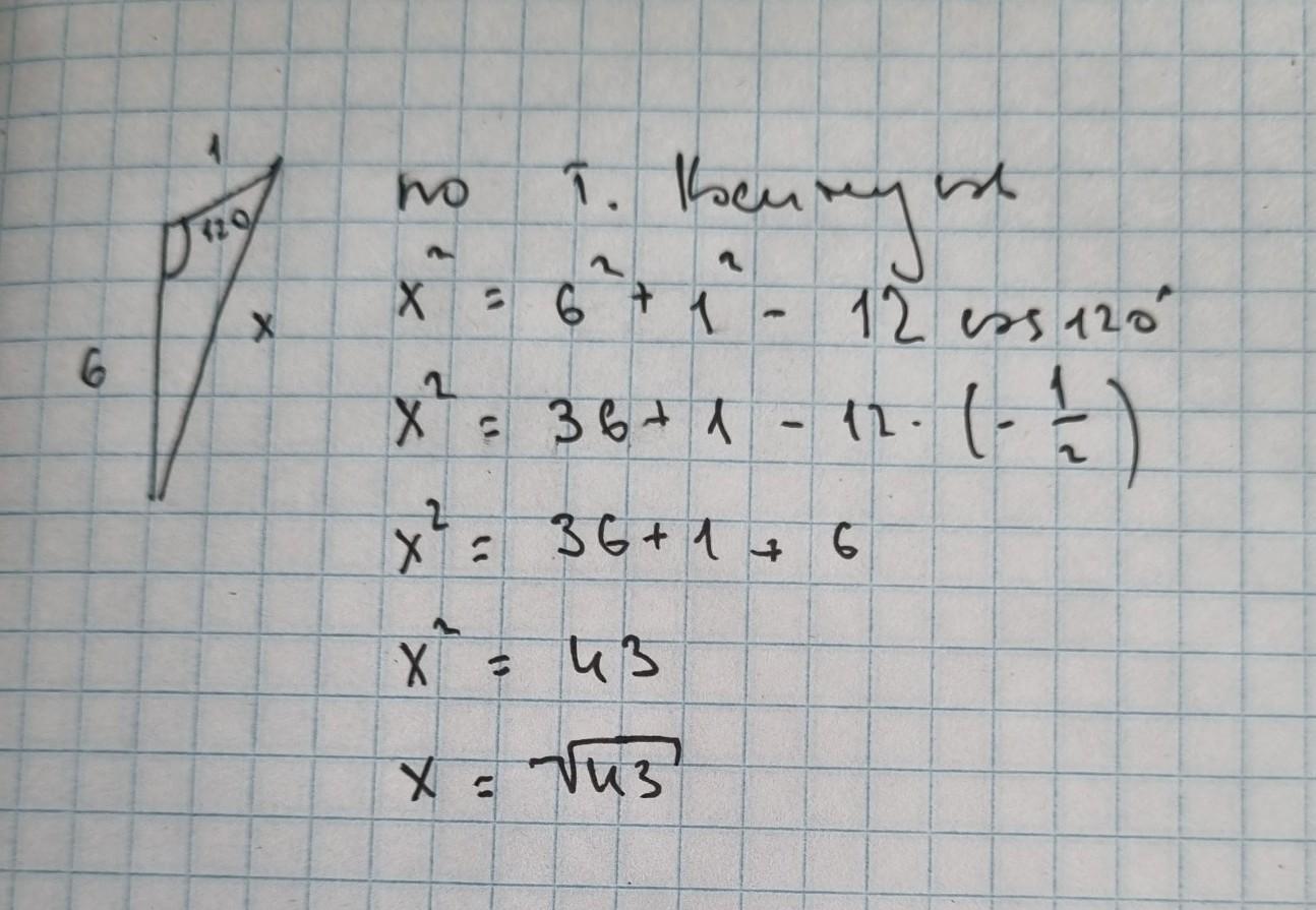 формулу теоремы крсинусов не расисывал но думаю можно догадаться