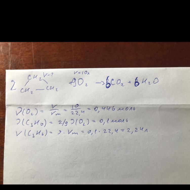 Ответ: объём циклопропана = 2,24 литра. Остальное решение на фотографии