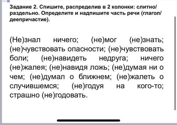 Раздельно: Не знал Ничего, не мог не знать, не чувствовать опасности, не чувствовать боли,ничего не жалея, не думая ни о чём, не думал о ближнем, не жалеть о случившемся.