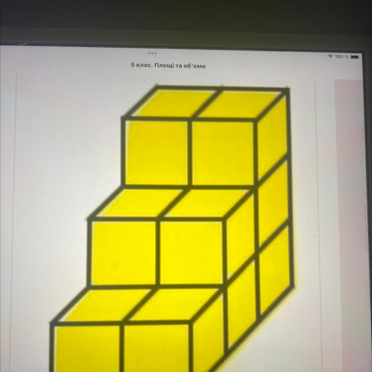 Фігура,зображена на рисунку, складена з кубиків,ребра якої дорівнюють 1см. Знайдіть об‘єм фігури