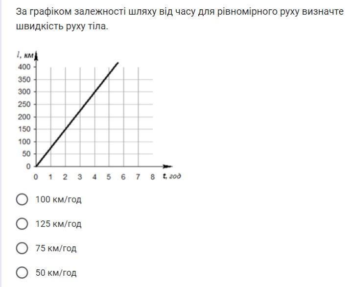 За графіком залежності шляху від часу для рівномірного руху визначте швидкість руху тіла.