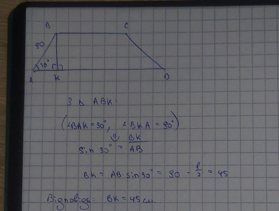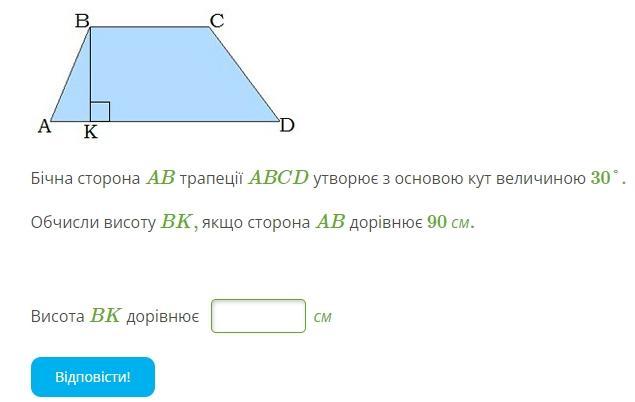 ПОМОГИТЕ!! Прошу!! Бічна сторона AB трапеції ABCD утворює з основою кут величиною 30°.