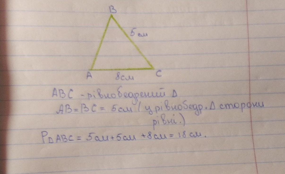 трикутника якщо його основа 8 см а бічна сторона 5 см . відповідь ко