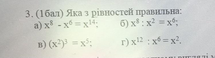 x8:х2 = х6 основа залишаеться показники віднімаються
