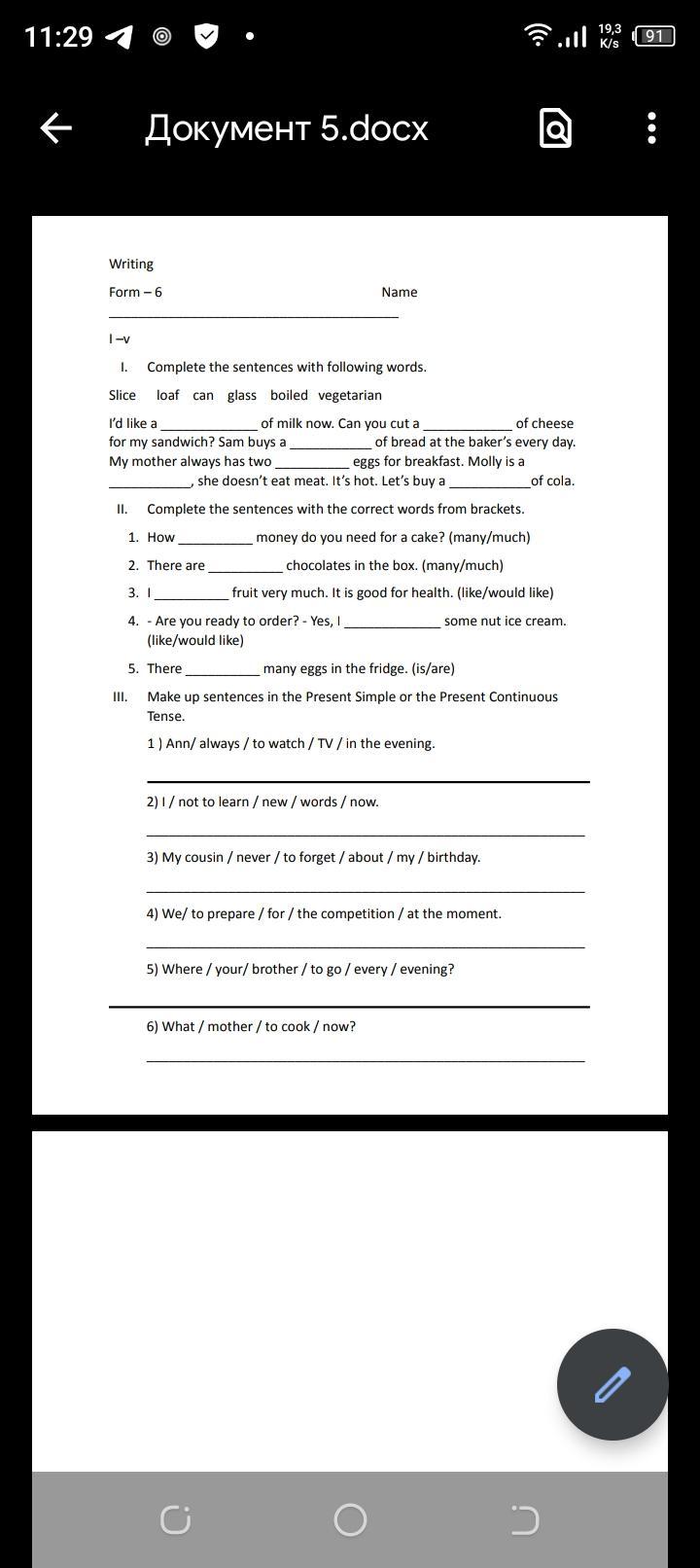3. Ann always wathes TV in the evening; I am not learning new words now; My cousin never forgets about my birthday; We are preparing for the competition at the moment; Where does your brother go every evening; What mother is cooking