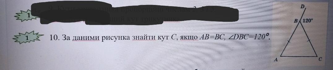Если ∡DBC = 120° тогда ∡ABC = 180°-120° = 60°, по этому ∡BAC = ∡BCA = (180°-60°)/2 = 60°