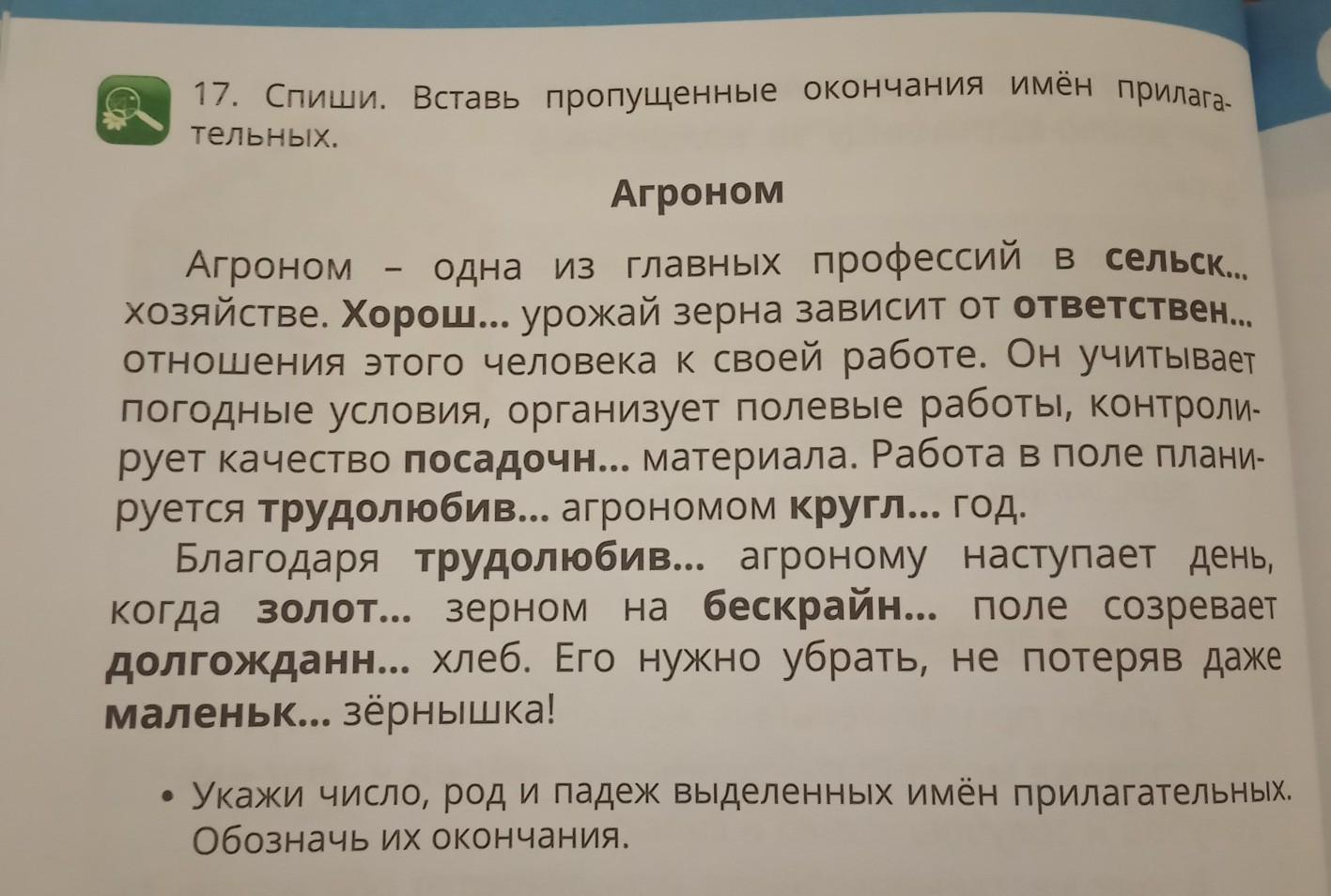 Спиши Вставь пропущенные окончания имён прилагательных укажи число род и падеж выделенных имён прилагательных обозначь их окончания